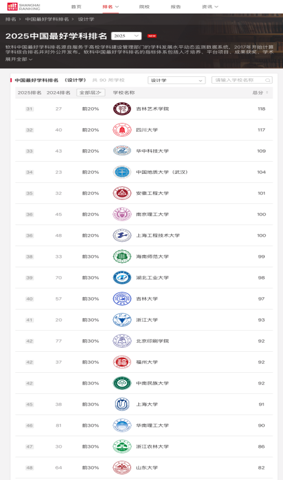 中南民族大学美术学院设计学学科在“2025软科中国最好学科排名”中荣获第42 /180名,跃居全国前24%行列!这一里程碑式的突破,标志着我院设计学教育已跻身国内高水平专业序列。