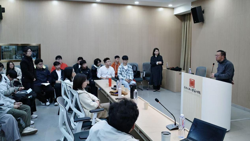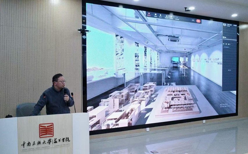 2025年11月12日下午,中南民族大学美术学院研究生学术名师大讲堂暨环境设计国家级一流本科专业线上线下联合课堂,在中南民族大学光谷美术馆报告厅成功举办。我院特邀湖北美术学院何凡院长担任主讲人,以“技术、艺术与人文:图像与图像——环境设计之纸上城市”为题开展专题讲座,旨在引导学生构建“技术、艺术与人文”交融的设计思维,探索环境设计从理念到“纸上城市”的创造路径。本次讲座由环境设计系主任廖璇老师主持,环境设计专业本科生、研究生及部分专业教师到场聆听。