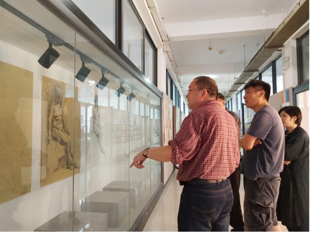 评分专家组由潘伟超教授、孙伟老师和姜小渊老师组成,作业成绩评定前,课程任课老师吴海广教授向专家组详细介绍了所授课程教学情况,专家组对作品进行了点评,并集体对同学们的作业进行打分。大家认为,通过作品反映出整体学生对于人体形态塑造、刻画深入度、素描语言掌握熟练度等方面把握良好,能熟练运用不同媒介材料来表现对象,课程作业反应出学生良好的学习状态,全班同学课程作业完整度高,课程学习进步显著。同时,老师们关注该班学生学习状态,对该班学生专业学习情况进行了交流分析。