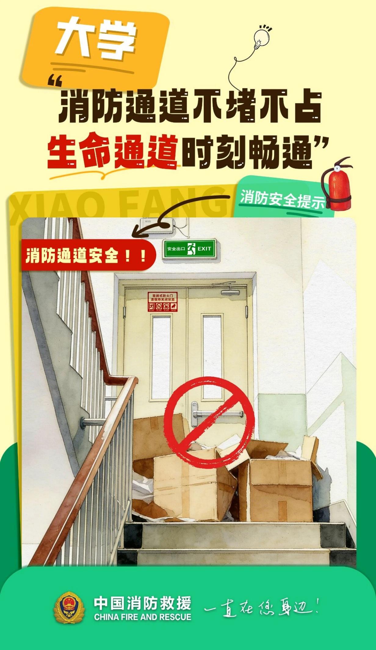 掌握逃生技能:熟悉宿舍楼的疏散通道和安全出口位置,定期参加学校组织的消防演练。