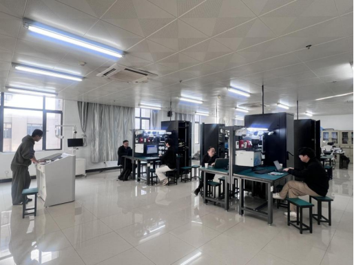 图1 实训室全景:企业级机柜与教学工位0距离,上课=上岗 摄影人:禹晴