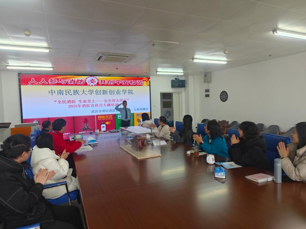 2025年12月30日,我院邀请武汉市利民消防技术服务中心王教官,在16号教学楼736室开展“全民消防,生命至上—安全用火用电”消防安全防火知识技能专题培训,全院教职工、大创孵化基地各公司负责人及员工等参加培训。创新创业学院院长潘泽江主持培训会。
