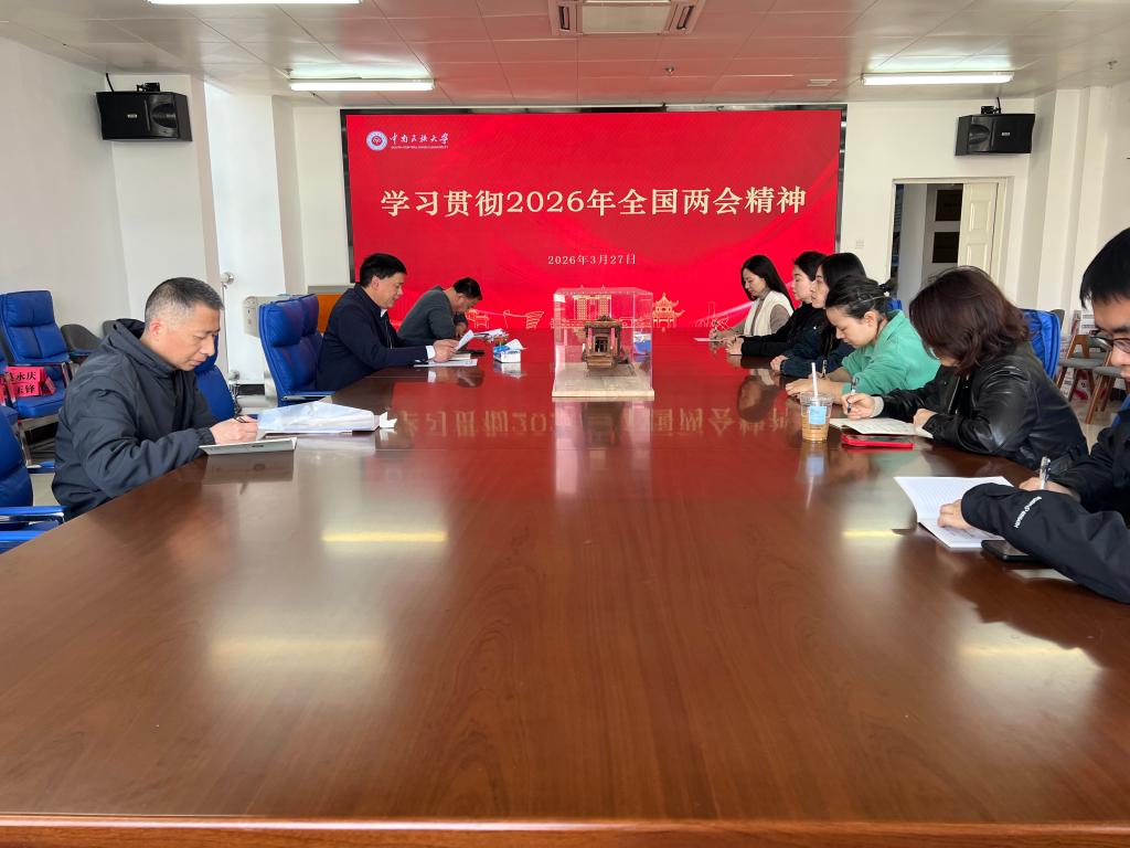 3月27日,创新创业学院组织教职工学习贯彻2026年全国两会精神,潘泽江院长主持学习会,全体教职工参加。