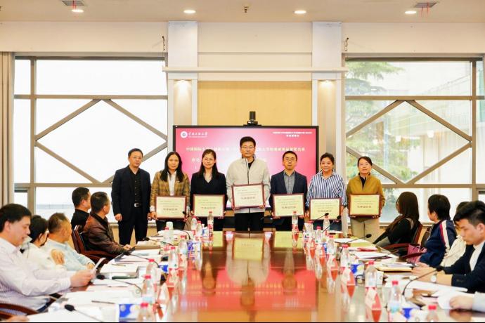 为表彰先进、树立典型,会议隆重颁发中国国际大学生创新大赛(2025)校赛奖项。药学院、电子信息工程学院(机器人学院)获成果显著奖,法学院、文学与新闻传播学院、民族学与社会学学院、经济学院、管理学院、国家安全学院、计算机学院(人工智能学院)、化学与材料科学学院、生命科学学院、药学院、马克思主义学院、音乐舞蹈学院获优秀组织奖。覃瑞副校长为获奖单位代表授牌,全场以热烈掌声向获奖单位表示祝贺。