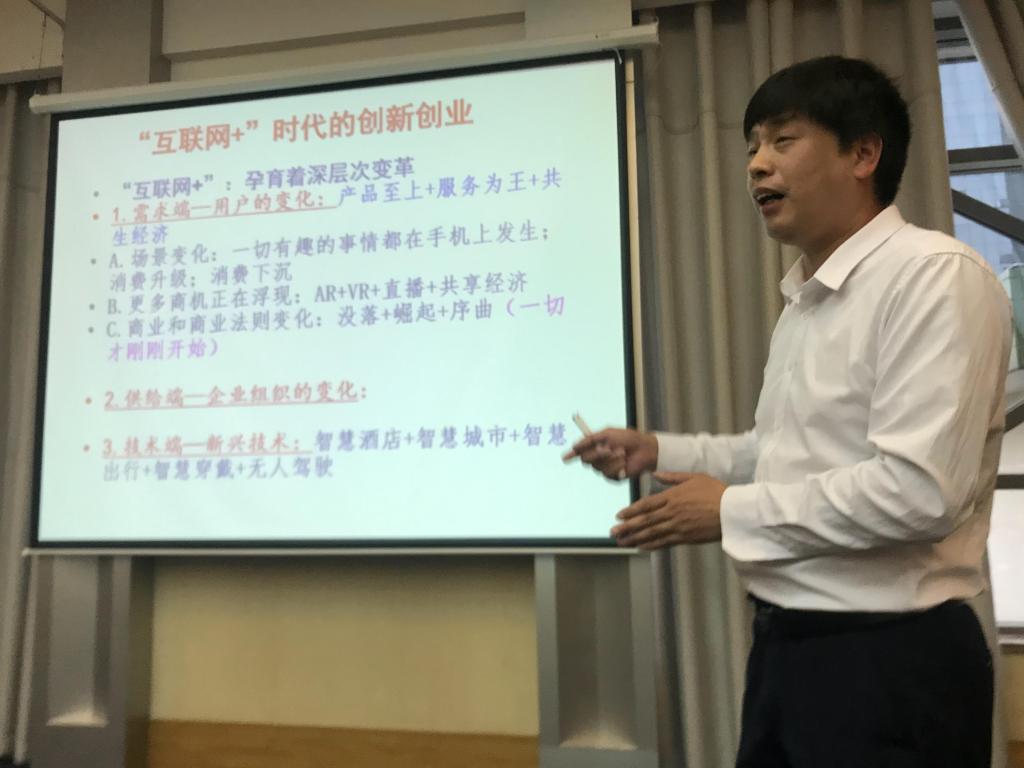 潘泽江教授安排下一步的赛事工作。他强调大赛是“互联网+”时代的创新创业,所有学科都可以参赛,并介绍了商业计划书的写作技巧,分享了几个实用的模板,代表创新创业学院表态做好大赛的保障、组织与落实工作。