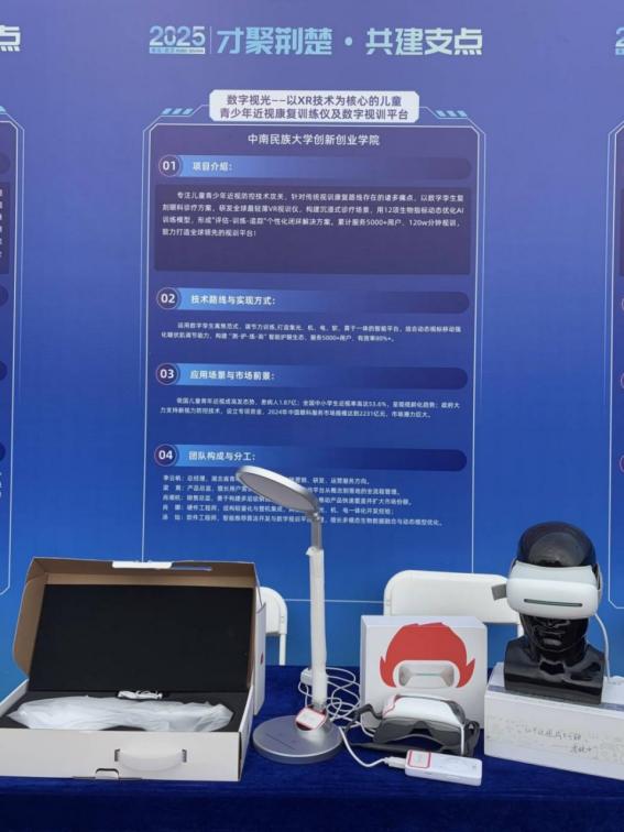 在本次招聘会的青年创新创业成果展示区,我校18级通信工程专业创业先锋李云帆团队的“数字视光——以XR技术为核心的儿童青少年近视康复训练仪及数字视训平台”项目引起了广泛关注。该项目依托XR技术、数字孪生与AI算法,攻克传统视训场景受限、依从性低等痛点,打造国内首个“All in one数字视训平台”,突破硬件依赖,构建“软件定义视光”的新范式,实现了数字孪生复刻诊疗方案、轻薄化硬件设计、底层算法库集成、智能中台实时分析等创新成果,通过生物指标分析实现“千人千面”训练方案,VR游戏化训练提升儿童参与度,数字平台打破医疗资源地域壁垒,展现了巨大社会价值。目前已累计服务超5000名用户,训练时长突破120万分钟。