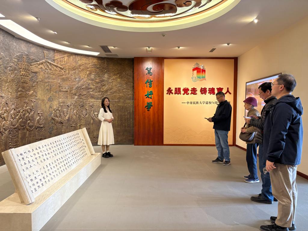 随后,李华女士与孟青先生前往民族学博物馆,沉浸式感受了中华民族多元一体的文化魅力。抚今追昔,孟夫唐老校长及其亲人为中华民族独立、解放和建设事业付出的艰辛与牺牲,令后人感怀动容;而学校今天在传承弘扬中华优秀传统文化、铸牢中华民族共同体意识方面的卓越作为,更让他们倍感欣慰与自豪。