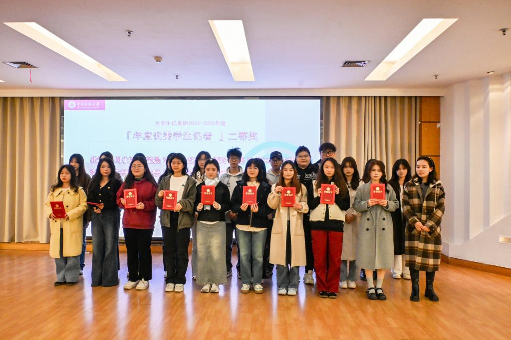 党委宣传部副部长杨征宣读了表彰名单,与会领导老师分别为年度优秀学生记者、优秀记者团干部、优秀网评员、优秀作品获得者及优秀部门代表颁奖。