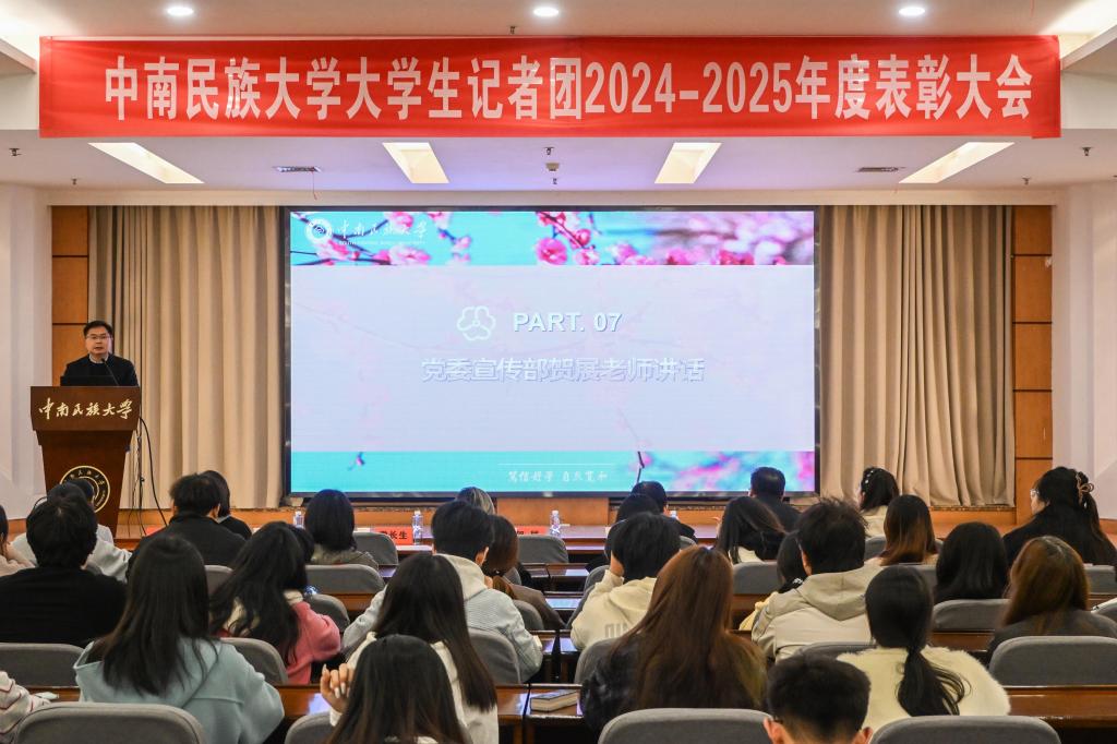 党委宣传部常务副部长贺展充分肯定了大学生记者团一年来的工作。他指出,大学生记者团是学校宣传工作队伍的重要组成部分,是做好学校宣传工作的重要支撑,要不断加强建设。他强调,一要铭记历史。深入学习中华民族交往交流交融史、学习校史校情,从历史中汲取力量,牢固树立正确的中华民族历史观;二要牢记使命。切实增强使命感,持续提升新媒体技术能力,弘扬主旋律、传播正能量,切实做到“知道为智,体道为德”;三要立足当下。珍惜“记者团”这份荣誉,将个人发展融入集体、融入民大,在具体实践中实现双向奔赴,共同讲好民大故事;四要拥抱未来。以学校融媒体中心建设为契机,强化AI赋能,加强对外合作,拓展宣传渠道,提高宣传实效,服务学校转型升级高质量。