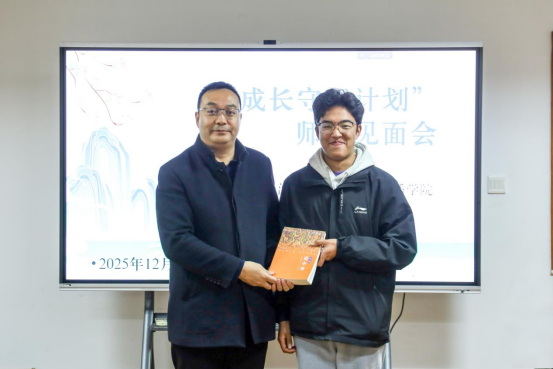 马玉堂向结对学生代表赠送学习书籍,并结合个人经历强调了成长道路上“引路人”的深刻影响,肯定了“成长守望计划”的育人价值。他强调,教师们要引导青年学子培养过硬品格、养成良好学习习惯、培育创新思维、厚植家国情怀,要通过成长来解决成长的烦恼。最后,他祝福同学们学有所成,不负青春。