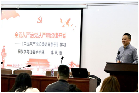 本站讯(记者:郑映霞 王娜) 11月23日上午,经济学院于15号教学楼1006会议室举办2019年第二期党员发展对象培训班第二讲。此次培训由民族学与社会学学院党委书记李从浩主讲,经济学院辅导员张竹云主持,培训班全体学员参加学习。
