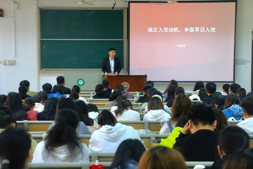 本站讯(记者:郝振兴 刘冠宏)11月10日上午,经济学院2019年第二期入党积极分子培训班第四讲在11号教学楼100教室开展。本次培训由党委副书记李忠贤主讲,培训班全体学员到场学习。