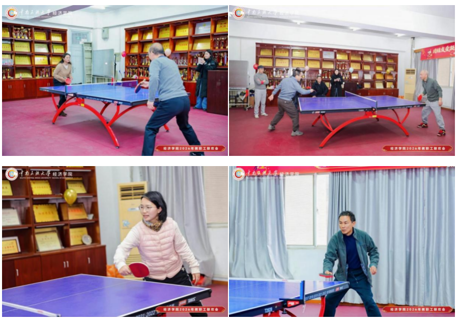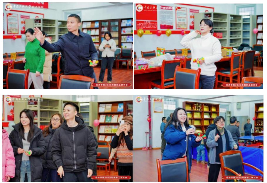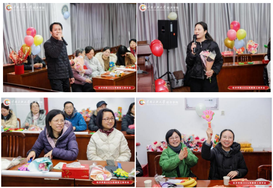 岁末辞旧,迎新纳福。在2026年寒假即将开启、新春佳节渐行渐近之际,为进一步拧紧学院教职工情感纽带,筑牢团队归属感与向心力,在学院工会的精心策划下,经济学院于1月20日下午隆重举办“团结友爱凝共识 笃行实干启新程”教职工联欢会。学院全体领导、教职工,以及在经济学院担任研究生导师、班导师的院外教师代表欢聚一堂,在欢声笑语中畅叙同事情谊,共话新春期许,擘画学院发展新蓝图。