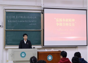 在发展对象与预备党员合班课程中,经济学院党委书记郭聪以《深学笃行党的二十届四中全会精神 踔厉奋发践行新时代党员责任担当》为题,从“强党性、明定位、找差距、抓落实”四个维度深入解读党员的责任使命。2024级本科学生党支部书记郭修齐则结合《中国共产党思想政治工作条例》,强调青年党员要在思想政治建设中增强主动性和坚定性,进一步提升政治判断力、政治领悟力、政治执行力。