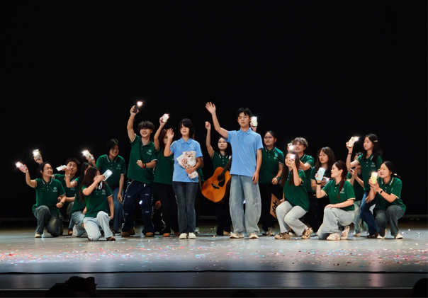 此次美育大课堂涵盖13个精品节目,分为“青春序章”“文化润心”“师生同心”三大篇章,内容丰富多元、氛围热烈浓厚。歌曲《找自己》《爱笑的眼睛》《等个空拍》以真挚唱腔直抵人心,引发学子对成长探索的深度共鸣;街舞《Like a Rockstar》活力四射,尽显青年蓬勃向上的精神风貌;民舞《美丽中国》《云水霓裳》、歌舞《珠玉》灵动雅致,直观展现中华文化的多元包容与东方美学韵味,厚植文化自信与民族自豪感;师生合唱歌曲《天外来物》、幕布剧《我记得》传递浓浓育人温度与集体记忆;经典朗诵《不朽》聚焦英雄群像,以声传情复刻峥嵘岁月,激发青年红色传承、勇担时代使命的爱国热忱。结尾全体合唱歌曲《奔跑》,激昂旋律点燃现场氛围,铿锵歌声中尽显经济人逐梦未来的豪情与同心筑梦的信念。