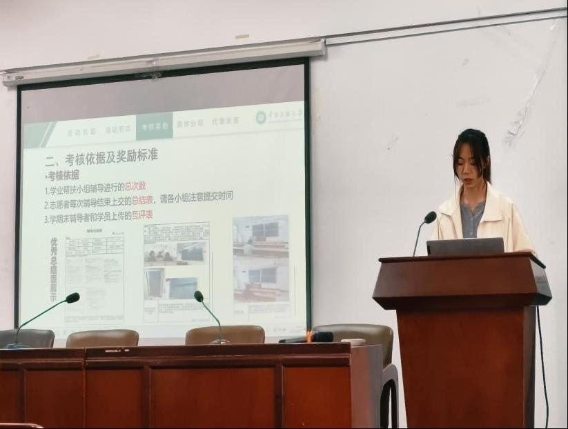 随后,李莹莹对活动考核与奖励机制进行详细解读。考核结果将综合帮扶总次数、总结表提交质量及学期末互评表三项指标评定,确保评价公平公正。