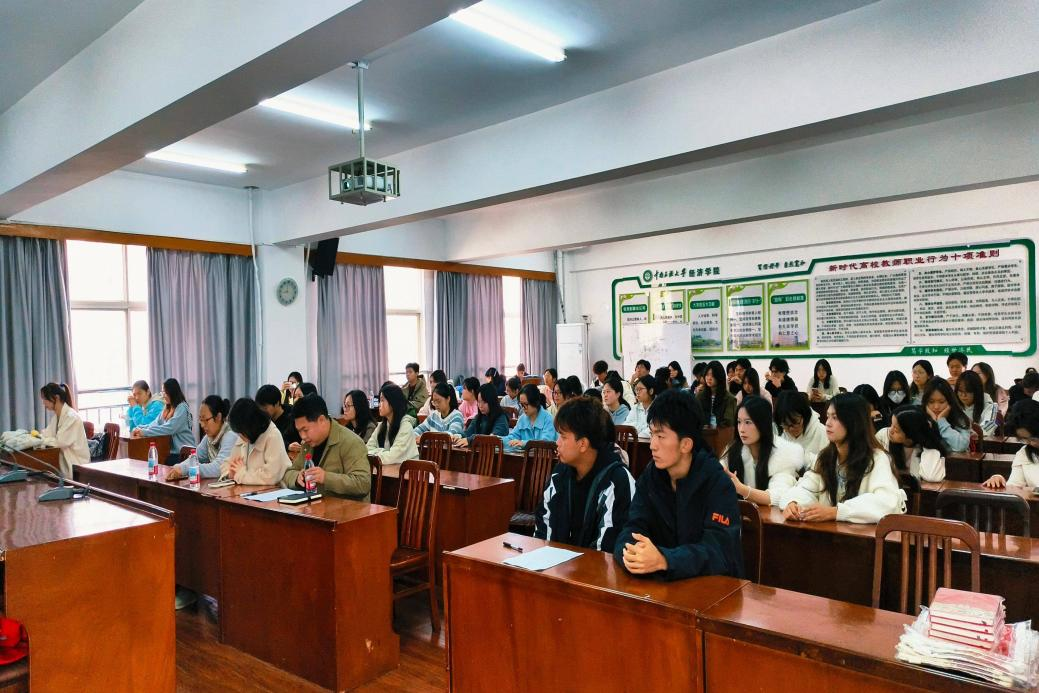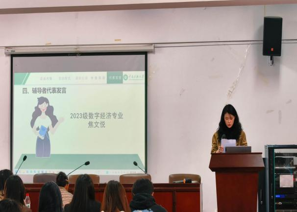 为深入贯彻落实《中南民族大学2025年秋季“学风建设月”工作实施方案》文件精神,推进落实学院“同学共进”计划,持续营造勤学、好学的良好氛围, 10月27日,经济学院于15号教学楼1006会议室举行第十期“志在同学,愿与共进”学业帮扶活动启动大会。经济学院团委副书记李恩朴、2025级辅导员张竹云、赵驰及学生代表参会,共同开启新学期学业互助新征程。本次活动由院团委志愿者工作部副部长李莹莹、陈宇主持。