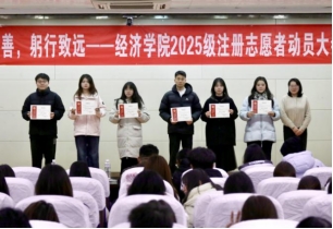 为弘扬志愿服务精神,营造志愿服务氛围,推动经济学院志愿服务工作高质量发展,12月12日晚,经济学院于16号教学楼二楼报告厅召开2025级注册志愿者动员大会。经济学院团委副书记李恩朴,2025级辅导员张竹云、赵驰出席会议,团委志愿者工作部、青年志愿者协会全体成员及经济学院2025级各班班委到场参与。会议由团委志愿者工作部副部长宋熠昕主持。