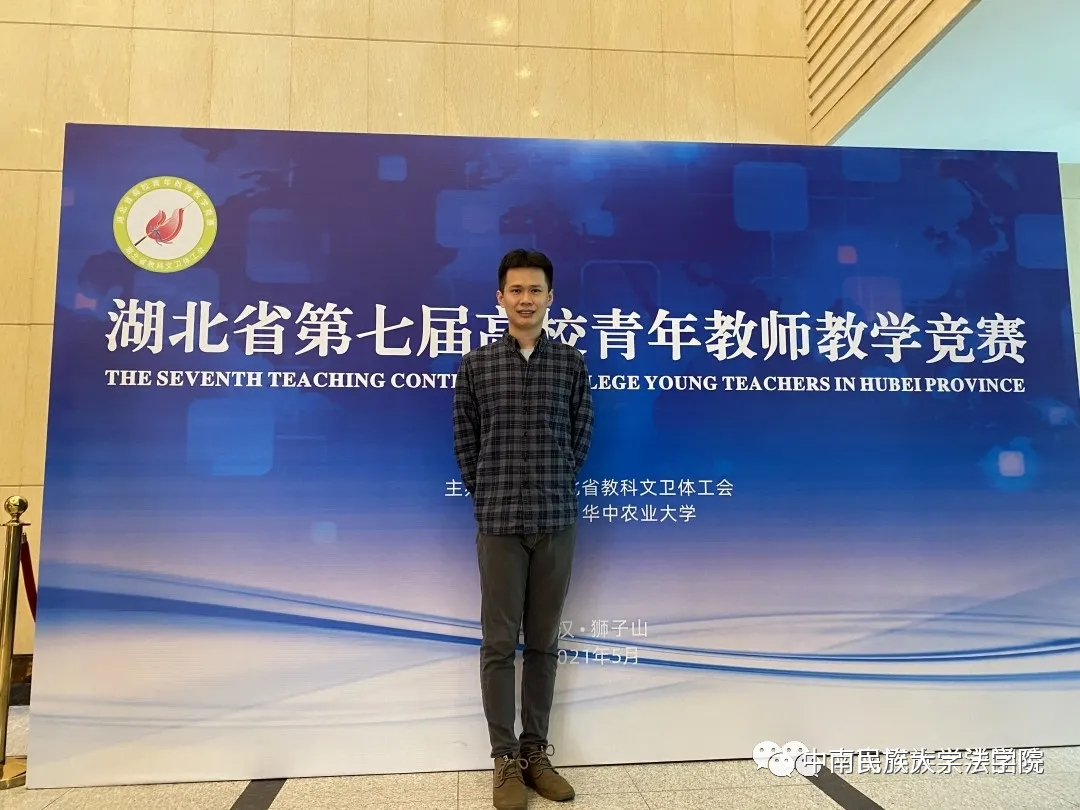 杨帆老师将大量生动形象的案例导入《高空坠物致人损害》一课中,以严密有序的教学设计、精细巧妙的教学课件、生动有趣的讲解、规范美观的板书、大方得体的仪表和精彩绝伦的现场答辩赢得了评委和观众的肯定。他在备赛时不断练习、合理规划时间,在竞赛时坦然面对、自然平和参赛,在参赛后复盘反思、积累总结经验,身体力行地诠释着“以学生为中心,把知识传授、能力培养和价值塑造,三者融合起来”的育人理念。因在教学领域的优异表现,杨帆老师还曾获得中南民族大学教学先进个人称号和法学院首届最受学生欢迎老师称号。
