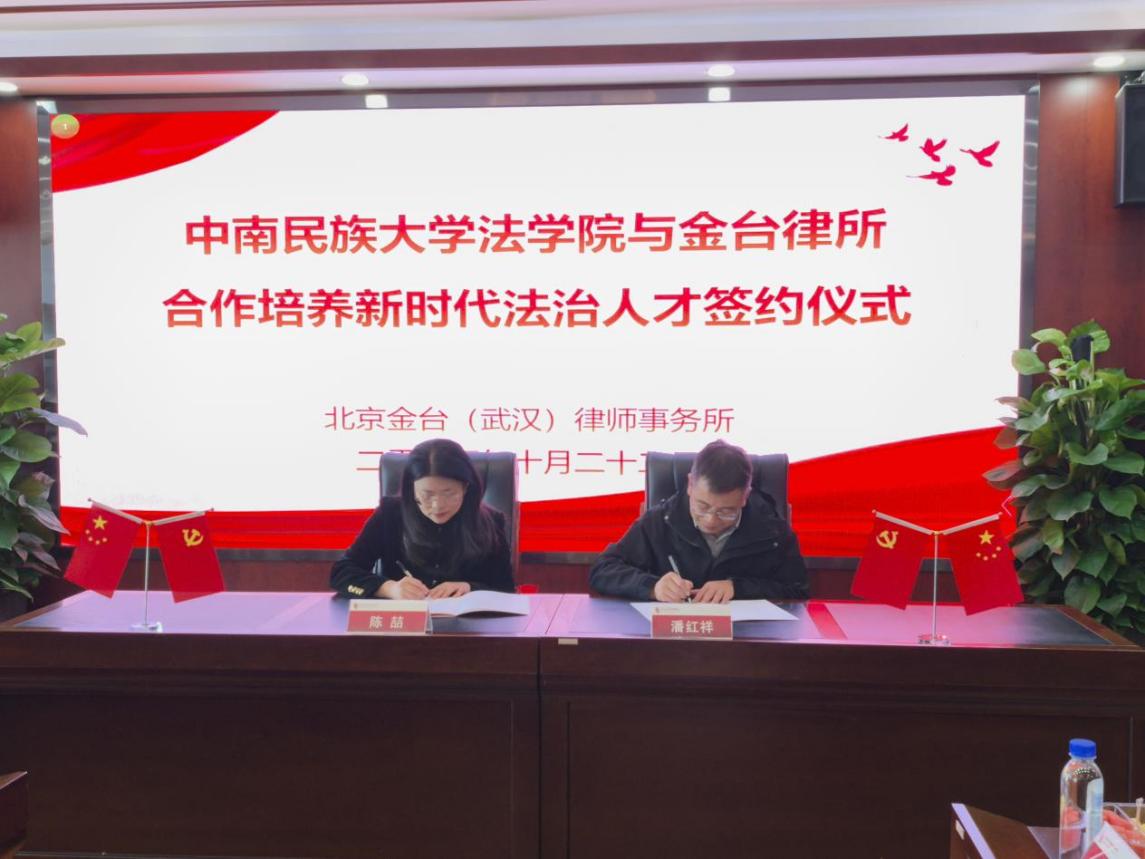 10月22日,学院院长潘红祥、副院长廖华一行赴北京金台(武汉)律师事务所,出席双方人才培养与实习实践合作基地签约暨授牌仪式。