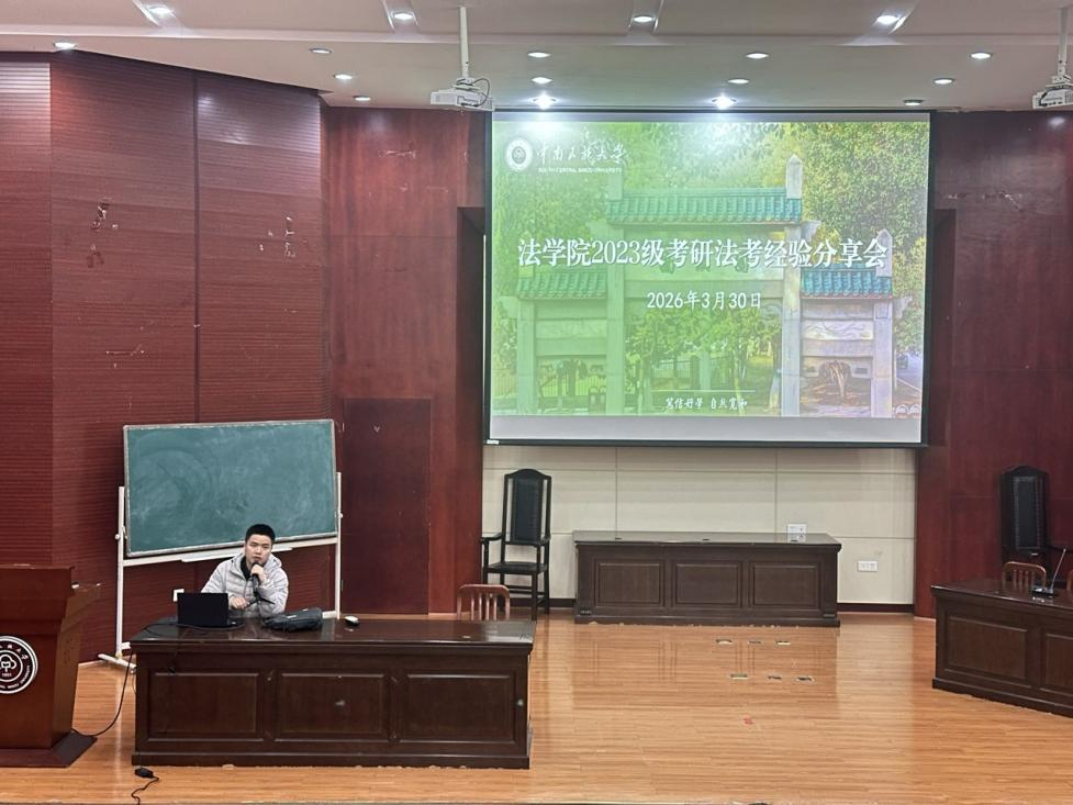 为引导学生合理应对考研的择校迷茫与备考压力,帮助学生树立正确考研目标、顺利上岸理想院校,3月30日,法学院于模拟法庭召开2023级考研经验分享会,本次会议由2023级辅导员陶恒主持,特邀研究生左右正、韦铱祎传授考研实战经验,全体2023级学生出席会议。