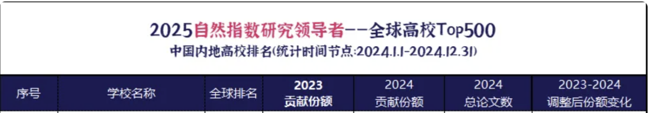 2025年度自然指数发布,我校位列民族高校第一