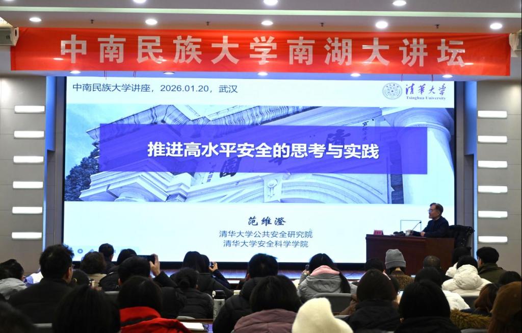 1月20日上午,南湖大讲坛第七十讲举行。应我校国家安全学院邀请,中国工程院院士、国务院学位委员会“国家安全学”学科评议组召集人、清华大学公共安全研究院院长范维澄院士来校,为师生作题为《推进高水平安全的思考与实践》的专题讲座。现场座无虚席,国家安全学院、电子信息工程学院、计算机学院、管理学院、经济学院、法学院等学院师生积极参加。国家安全学院院长彭庆军主持讲座。