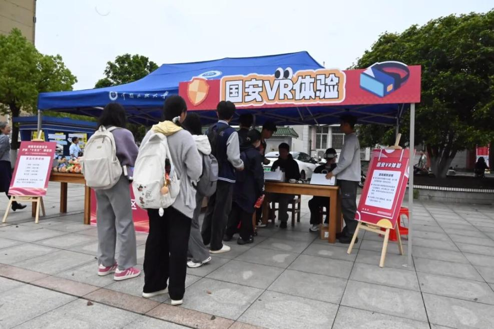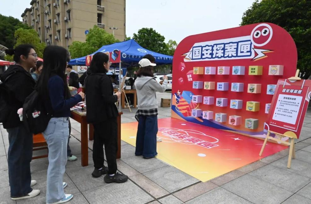 (图为国家安全教育日现场宣传活动,师生驻足观展)
