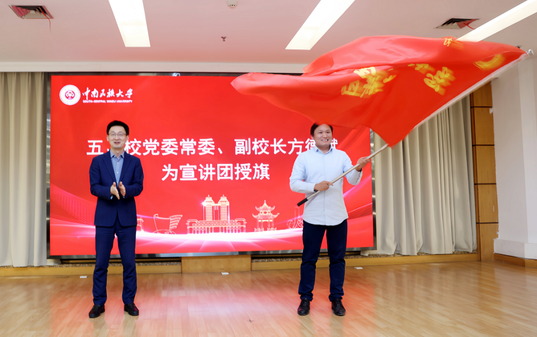 随后,方德斌为宣讲团授旗。仪式结束后,宣讲团成员合影留念。