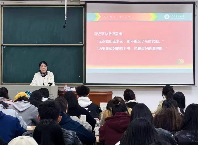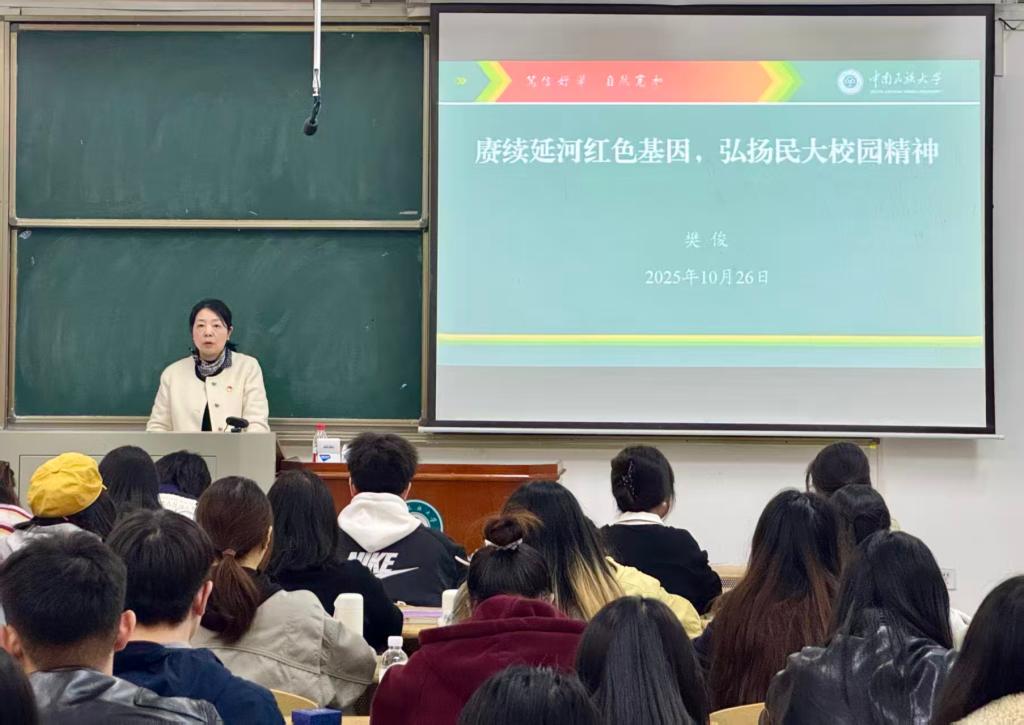 随后,樊书记以“赓续延河红色基因,弘扬民大校园精神”为主题,为学员们讲授开班第一课。课程围绕“回顾校史,从民大人的红色基因中汲取前进力量”和“践行校训精神,在中国式现代化进程中挺膺担当”两大主线展开。樊书记从学校发展的四个阶段讲起,回顾了从延安民族学院、中原大学、中央民族学院中南分院到中南民族学院、再到中南民族大学的办学历程,讲述了一代又一代民大人始终不忘初心、永跟党走、铸魂育人的故事。强调学校始终与党和国家的发展同频共振,共计培养了20余万名高素质人才。在“弘扬校训精神”部分,樊书记深入解读“笃信好学、自然宽和”的内涵,鼓励学员在新时代新征程中做到“立志、立业、立新”,坚定理想信念,厚植家国情怀,将个人理想融入国家发展,以真才实学服务社会经济建设,以创新精神回应时代召唤,在中国式现代化进程中挺膺担当。