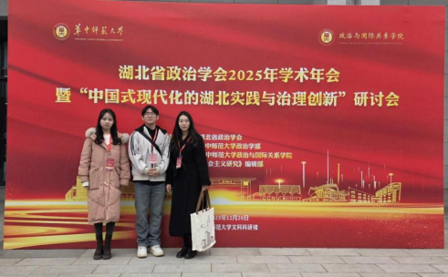 为紧密对接中国式现代化湖北实践的重大需求,深化区域治理与数字治理研究,12月19日至20日,我院毛斌菁老师、蒋鹏老师带领陈梓峰等硕士研究生一行,赴华中师范大学参加湖北省政治学会2025年学术年会暨“中国式现代化的湖北实践与治理创新”研讨会。本次会议紧扣湖北“建成中部地区崛起重要战略支点”的国家使命,聚焦“七大战略”“七个能力”战略部署,汇聚了全省政治学领域的众多专家学者,共同围绕治理创新与现代化实践展开深入研讨。