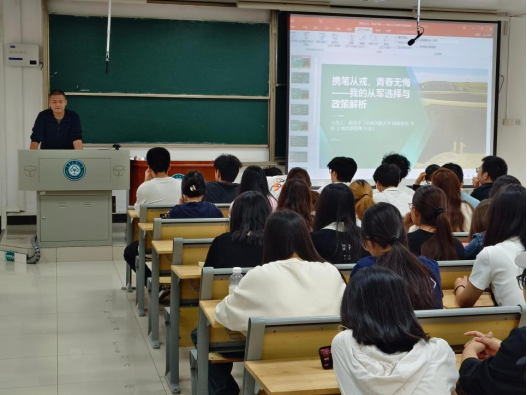 金秋送爽丹桂香,参军报国正当时。10月11日上午,国家安全学院2025年秋季征兵动员宣传大会在15号教学楼105教室隆重举行。本次大会迎来了一位特殊的“老师”——我院优秀校友、士兵计划研究生杨泽宇。他以学长和“老兵”的双重身份重返母校,为全体2025级新生带来一场别开生面的征兵宣传专题讲座。