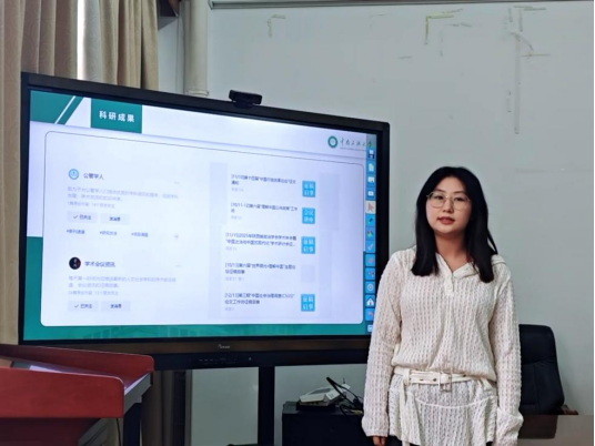 行政管理专业的陆星雨同学从学术研究成果、学科竞赛成绩、创新发明成绩三个方面介绍了个人获奖优势。她分析各项指标在国奖评定中的占比,强调科研成果的重要性,她认为学习结构方程模型、扎根理论等研究方法是书写论文的关键,并建议同学们通过“公管学人”等公众号平台获取会议征文信息。