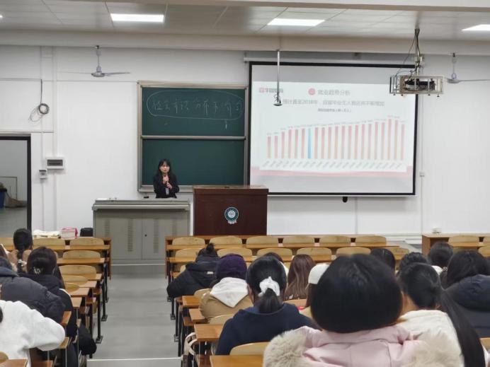 在职业规划讲座环节,华图教育的资深讲师围绕同学们关心的核心问题,带来系统性、实用性的指导内容。政策解读上,讲师详细梳理了国家及湖北省公职人员招录的最新政策变化,包括报考条件调整、招录人数趋势、热门岗位分布等,特别针对国家安全、公共管理等相关专业的适配岗位进行重点分析;岗位选择上,讲师指导同学们结合自身专业特长、职业志向、地域偏好等因素科学筛选岗位,合理选择报考岗位,提高报考成功率;备考规划上,讲师拆解了笔试行测、申论两大科目的备考重点与答题技巧,为同学们积极备考提供了有效指引。