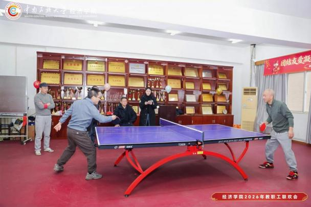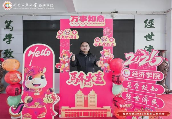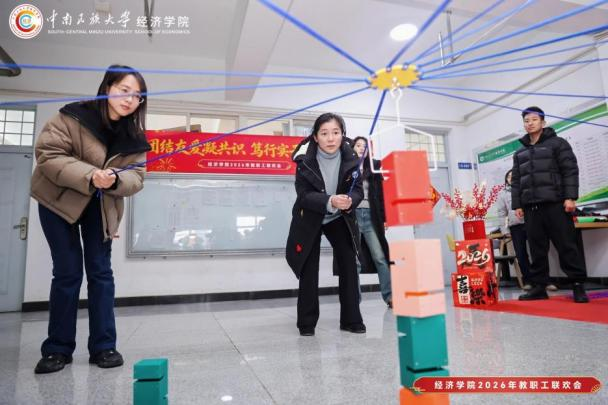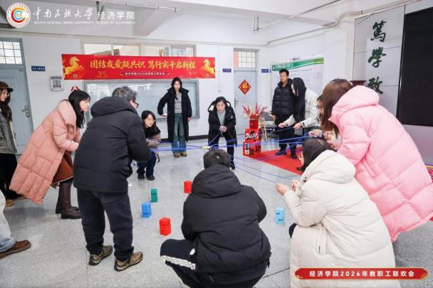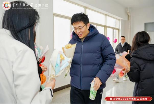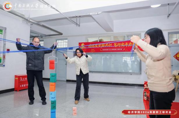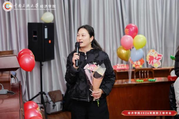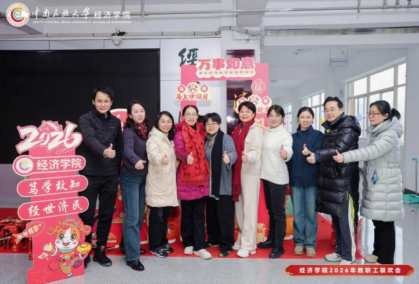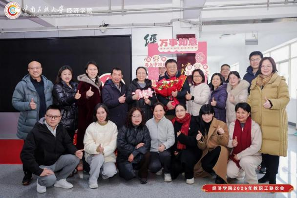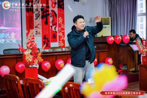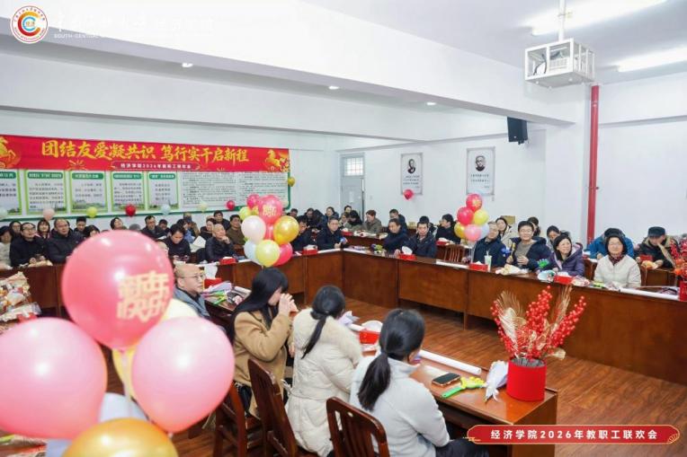 岁末辞旧,迎新纳福。在2026年寒假即将开启、新春佳节渐行渐近之际,为进一步拧紧学院教职工情感纽带,筑牢团队归属感与向心力,在校工会的指导下,学院工会的精心策划下,经济学院于1月20日下午隆重举办“团结友爱凝共识 笃行实干启新程”教职工联欢会。学院全体领导、教职工,以及在经济学院担任研究生导师、班导师的院外教师代表欢聚一堂,在欢声笑语中畅叙同事情谊,共话新春期许,擘画学院发展新蓝图。