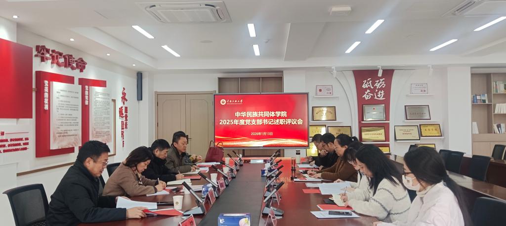 1月13日上午,我院2025年度党支部书记述职评议会在北书院508会议室召开。学院中华民族共同体学系教师党支部书记叶慧、博士生党支部书记赵梦涵、硕士生党支部书记湛谌进行述职。学院全体党总支委员、师生党员代表参会,学校党建工作督导组唐光海、张荔芳同志到会指导。