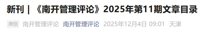 《南开管理评论》创刊于1998年,是由国家教育部主管、南开大学主办的工商管理学科学术刊物,是国家自然科学基金管理科学部A类期刊、国家社会科学基金资助期刊、中国社会科学引文索引(CSSCI)来源期刊,是学术界公认的管理学权威期刊。