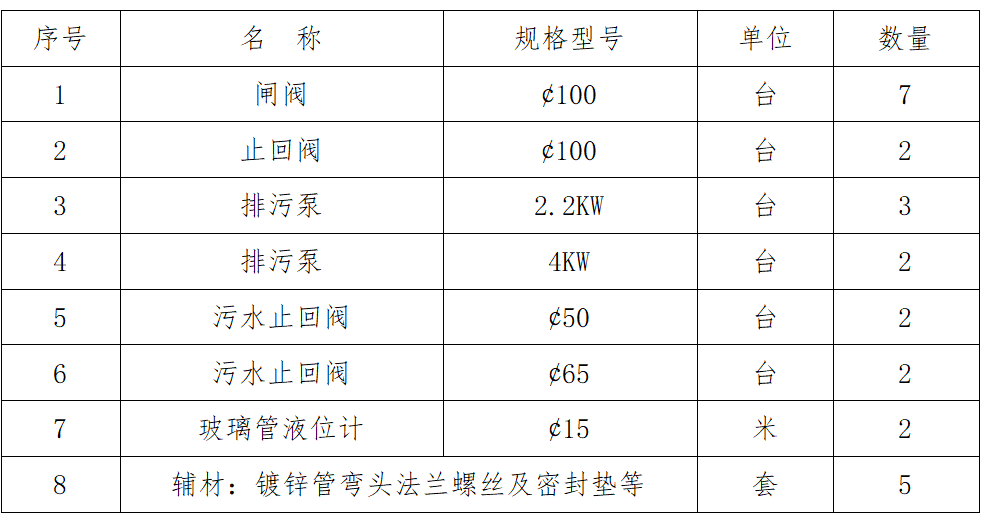 3. 采购内容:中南民族大学未来城科技园园区给排水系统中部分排污泵及阀门等部件出现不同程度老化锈蚀,导致运行故障。本次采购需提供符合要求的部件进行更换维修,报价包含包含人工费、安装及调试费、税费等全部相关费用。具体采购清单及技术参数如下: