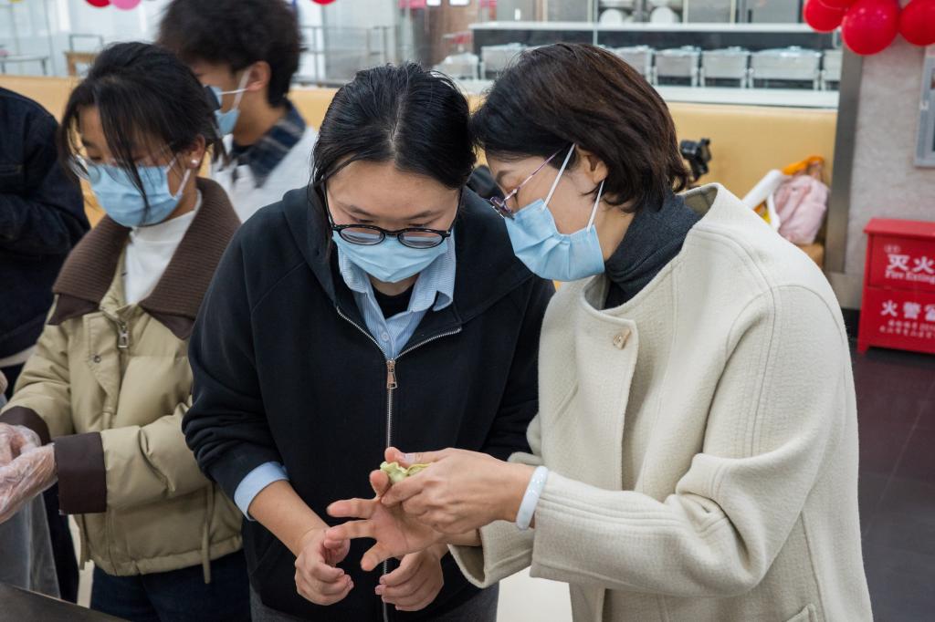 座谈会的余温未散,食堂餐厅里已飘起馅料的香气。揉面、擀皮、包馅,师生与后勤工作人员分工协作、默契配合,一张张饺子皮在大家手中变成圆润饱满的饺子,食堂内洋溢着温馨欢乐的节日氛围。当热气腾腾的饺子端上桌,同学们围拢的笑脸上,映着的是劳动的成就感,更是“校园即家”的归属感。“和大家一起包饺子,就像回到家一样。”彭喆同学的感慨成了这个冬至最柔软的注脚。