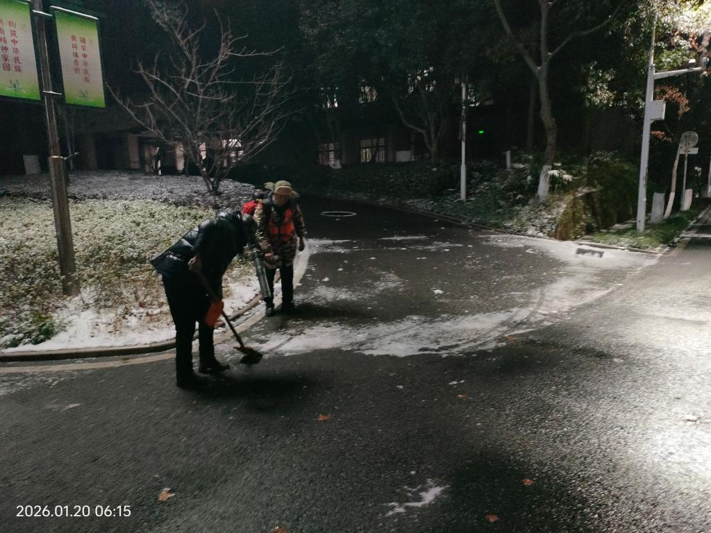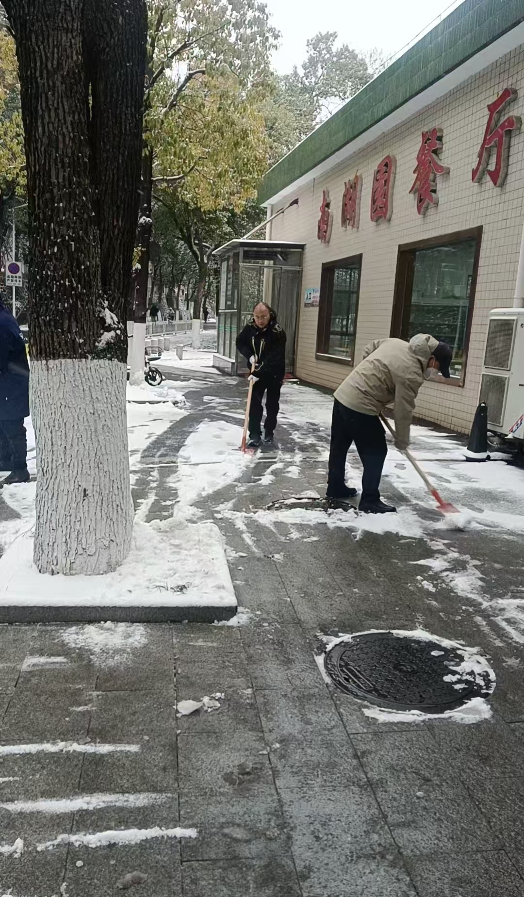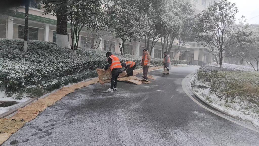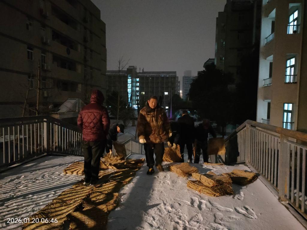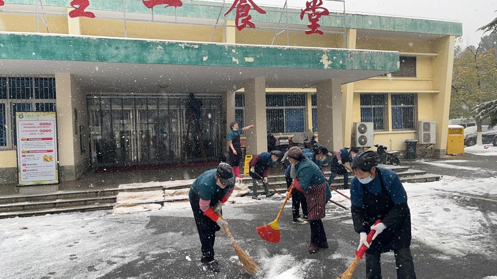 1月20日清晨6时许,雪花悄然洒落校园,为校园披上银装的同时,也给师生出行、校园运行带来了诸多安全隐患。面对突如其来的降雪及低温天气,后勤保障处成立以江玲、李川国为组长,郑重、陈冬、王慧为副组长的应急工作领导小组,迅速启动抗冰雪灾害天气应急预案,统筹协调各中心力量,组建50余人的党员、教工应急队伍,开展为期五天的应急值班值守。以雪为令、闻雪而动,全方位保障全校师生工作、学习、生活有序开展。
