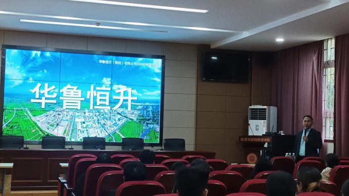 为深化校企合作,拓宽毕业生实习就业渠道,2026年3月18日,校友企业华鲁恒升(荆州)有限公司(以下简称“华鲁恒升”)校园招聘宣讲会在化学与材料科学学院顺利举行。华鲁恒升招聘负责人张总一行与我院师生进行了深入的交流,为我院2026届毕业生带来了优质的就业岗位与发展机会。
