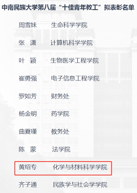 Prof. Shaozhuan Huang was selected as one of the ten 'Top Ten Young Teachers'. Congratulations!