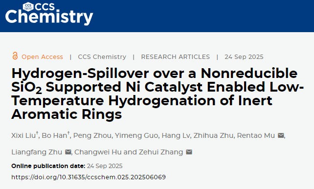 Prof. Zehui Zhang team's work on hydrogen spillover effect of non-precious metal (Ni)- non-reducible oxide support (SiO2) was published at CCS Chemistry on Sept. 24th, 2025. Congratulations!