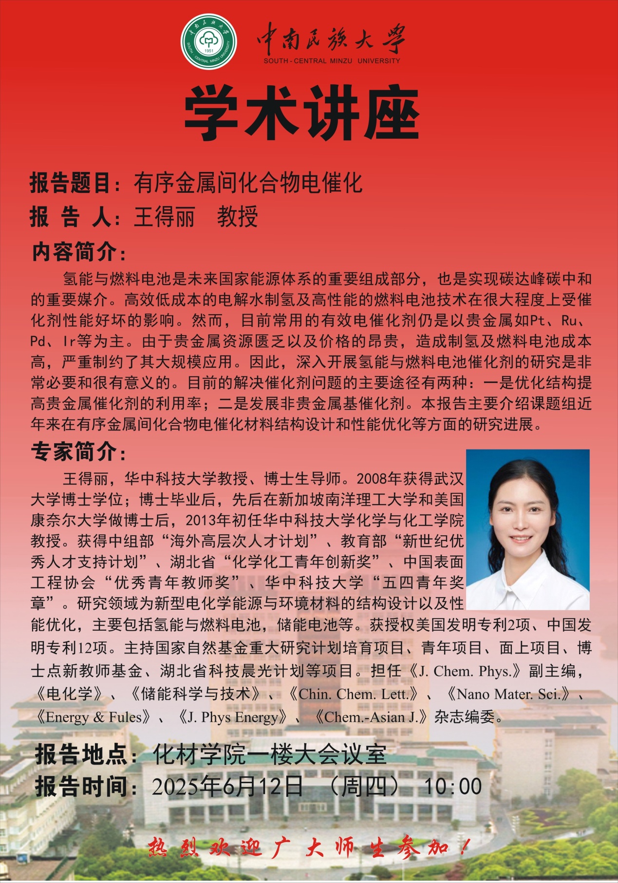 Lecture Hall (Room No.109), School of Chemistry and Materials Science