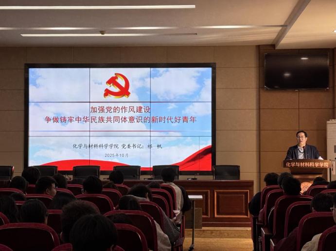 10月23日下午,化学与材料科学学院2025年秋季入党积极分子、发展对象、预备党员培训班开班仪式暨第一堂党课在化材楼109室举行。学院党委书记祁帆、本期党校带班老师、2025级辅导员徐宇豪、培训班全体学员参加培训…