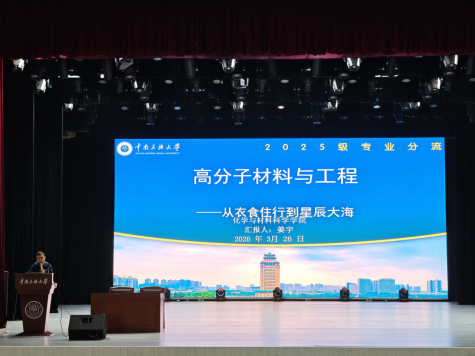 专业介绍环节,四位骨干教师依次为同学们详细解读各专业的培养目标、课程体系与就业前景。金士威院长围绕化学工程与工艺专业培养具备工程思维与实践能力的人才展开,介绍了就业覆盖化工、能源、环保等领域;姜宇教授介绍高分子材料与工程专业,指出该专业聚焦新能源、光电信息等战略产业,注重全产业链培养,实践与就业机会丰富;黄绍专教授讲解材料化学专业,说明其聚焦新能源与功能材料研发,依托国家级一流课程与优质科研平台,培养复合型人才;陈连清教授分享应用化学专业特色,该专业侧重基础研究与应用转化,兼顾精细化工、分析检测领域需求与考研支撑。