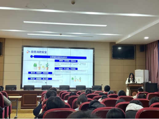 随后,会议聚焦宿舍安全管理核心内容,开展专题讲解。吴林鑫同学围绕用电安全,强调严禁使用大功率电器、私拉乱接电线等违规行为;针对消防安全,普及灭火器的正确使用方法、火灾逃生自救技巧,以及宿舍内易燃易爆物品的管理要求;在财务安全方面,提醒同学们妥善保管个人贵重物品,提高防盗防骗意识,切实筑牢宿舍安全防线。