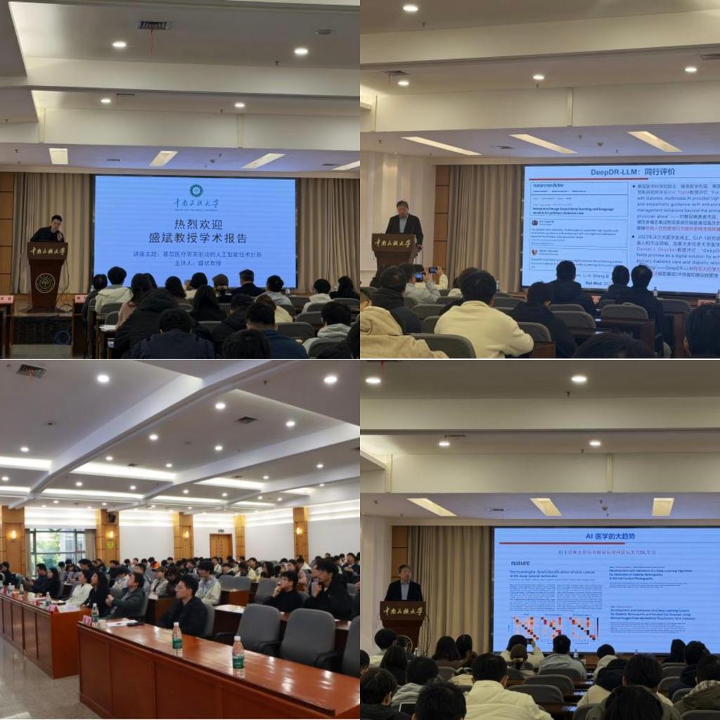 盛斌教授获国家自然基金委青年科学基金项目(A类)、国家万人计划青年拔尖人才等项目资助,近五年来以(共同)第一 / 通讯作者身份在 JAMA、Nature Medicine 等顶级期刊发表论文 69 篇,获上海市科技进步特等奖、世界人工智能大会 SAIL AWARD 等多项重要荣誉。此次讲座为师生搭建了高水平学术交流平台,不仅展现了人工智能与基层医疗融合的前沿动态,也为相关领域的教学科研和创新实践提供了新思路。