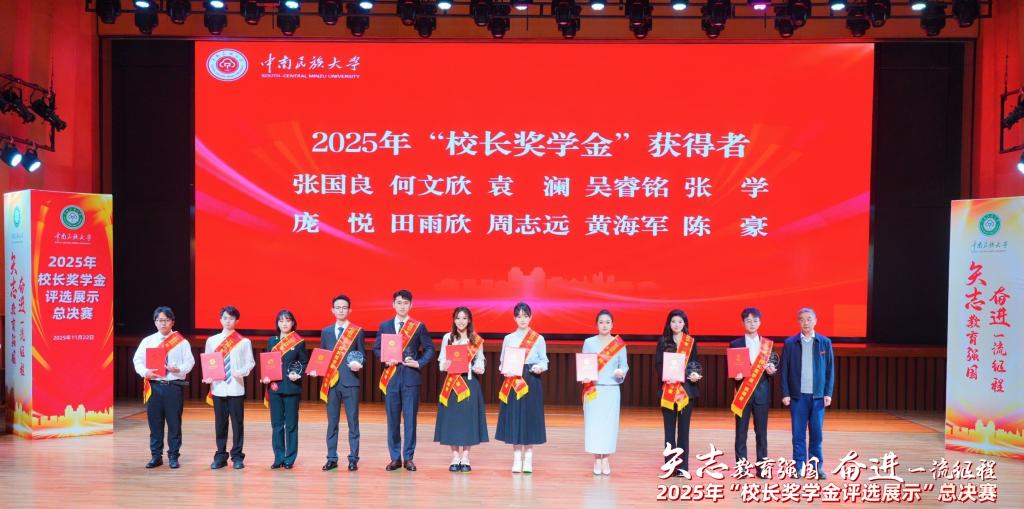 11月22日上午,中南民族大学2025年“校长奖学金评选展示”总决赛在光谷音乐厅盛大启幕。计算机学院(人工智能学院)2022级本科生:计算机科学与技术专业张国良、网络工程专业黄海军,历经多轮严苛选拔,凭借全方位的综合素养与精彩展示,双双斩获“校长奖学金”殊荣。其中,张国良以95.11分的高分力压群雄,高居总决赛榜首,为学院再添荣光!