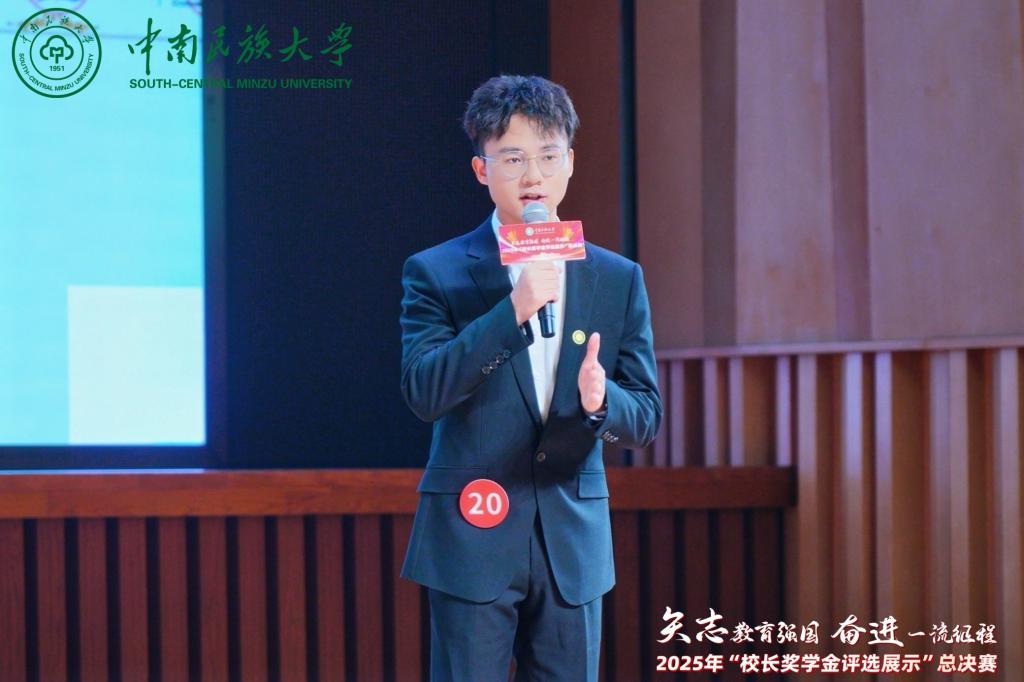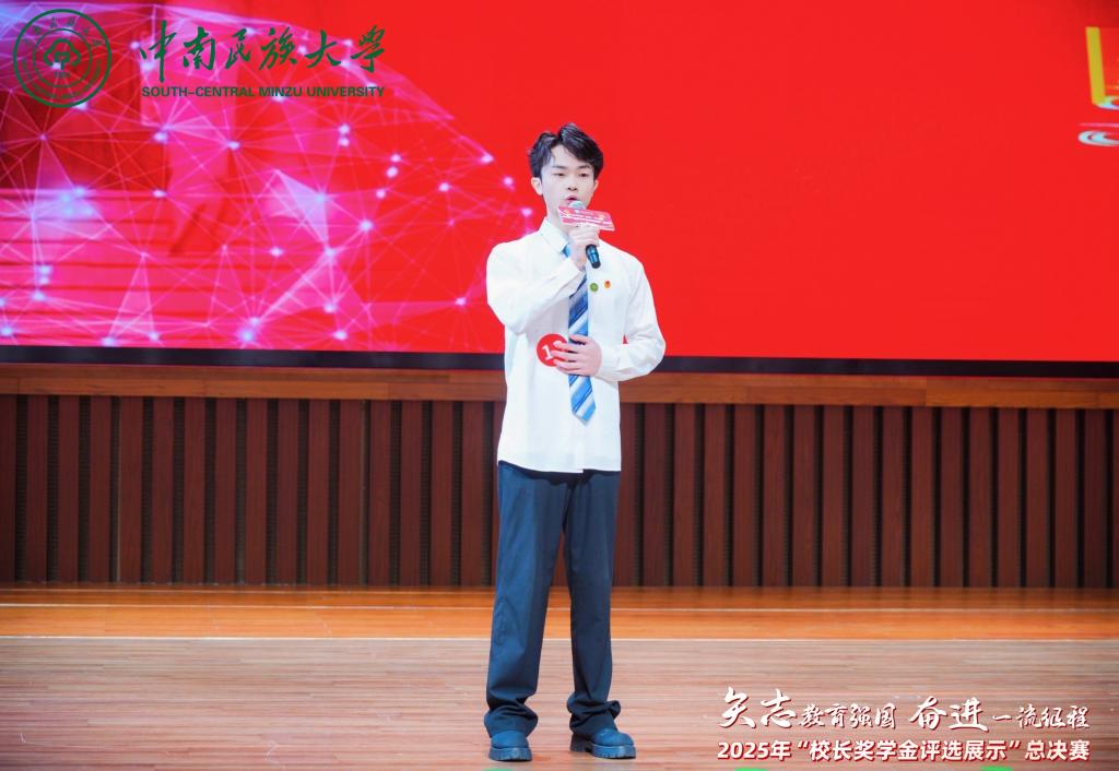 在展示环节,两名同学围绕学业成绩、科研创新、志愿服务、综合素质等多个方面,展示了他们在中南民族大学求学过程中的青春故事。张国良以“武陵山”为精神坐标,怀揣反哺家乡的赤子之心,在求学路上步履铿锵。他扎根乡土调研,精准直击当地茶业发展瓶颈;深耕科研课题,以人工智能技术赋能女书文化传承,让古老文明在数字时代焕发新生;从武陵山区走到江汉平原,走到南湖边,走到双子塔下,翻过一重又一重山,从攀登“书山”到挑战 “险山”,走的每一步都掷地有声!他带着“向下扎根”的定力深耕学业,带着“向上生长”的勇气担当使命,在科技报国的路上奋力奔跑,用青春书写无悔的答卷!